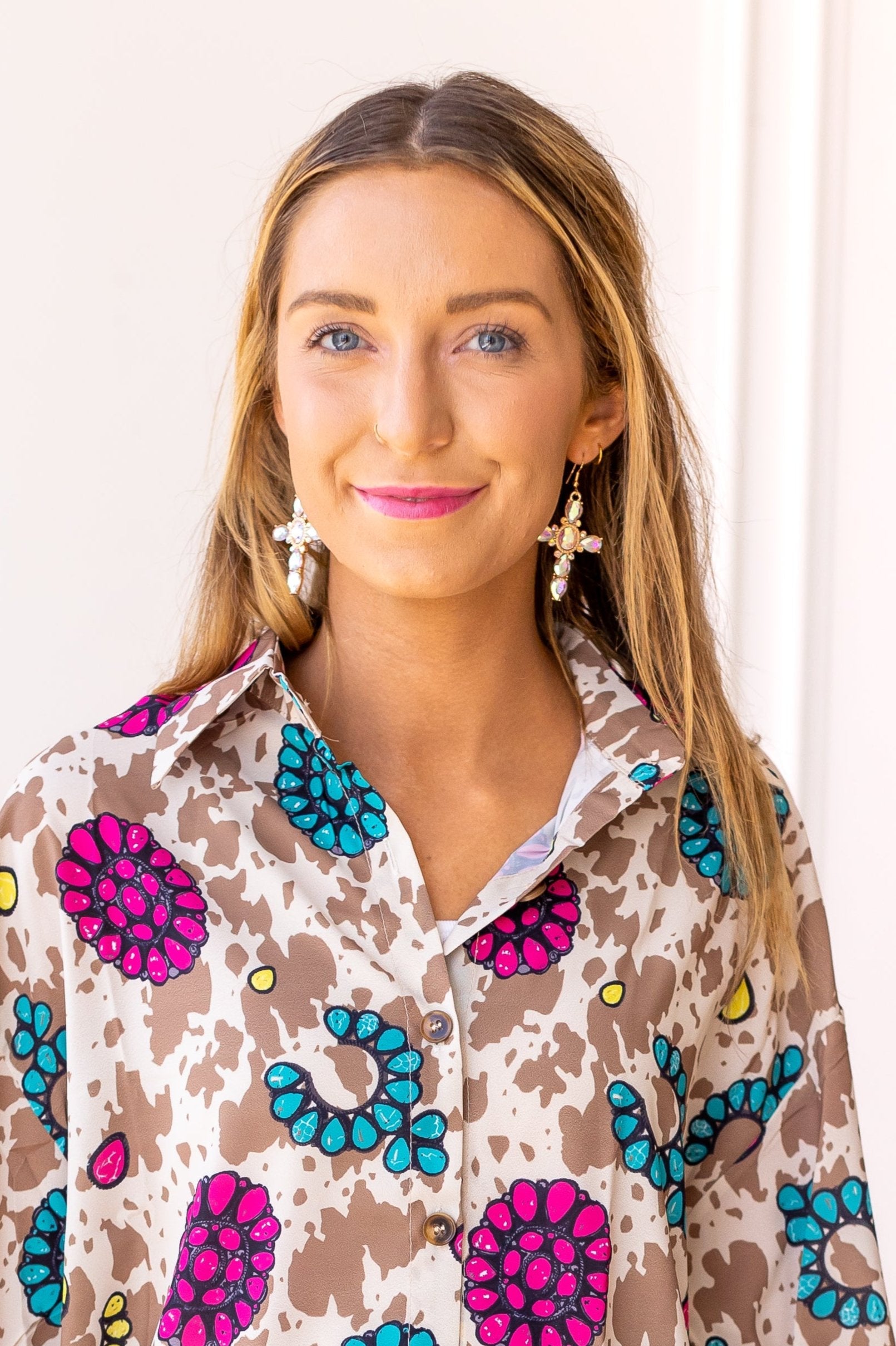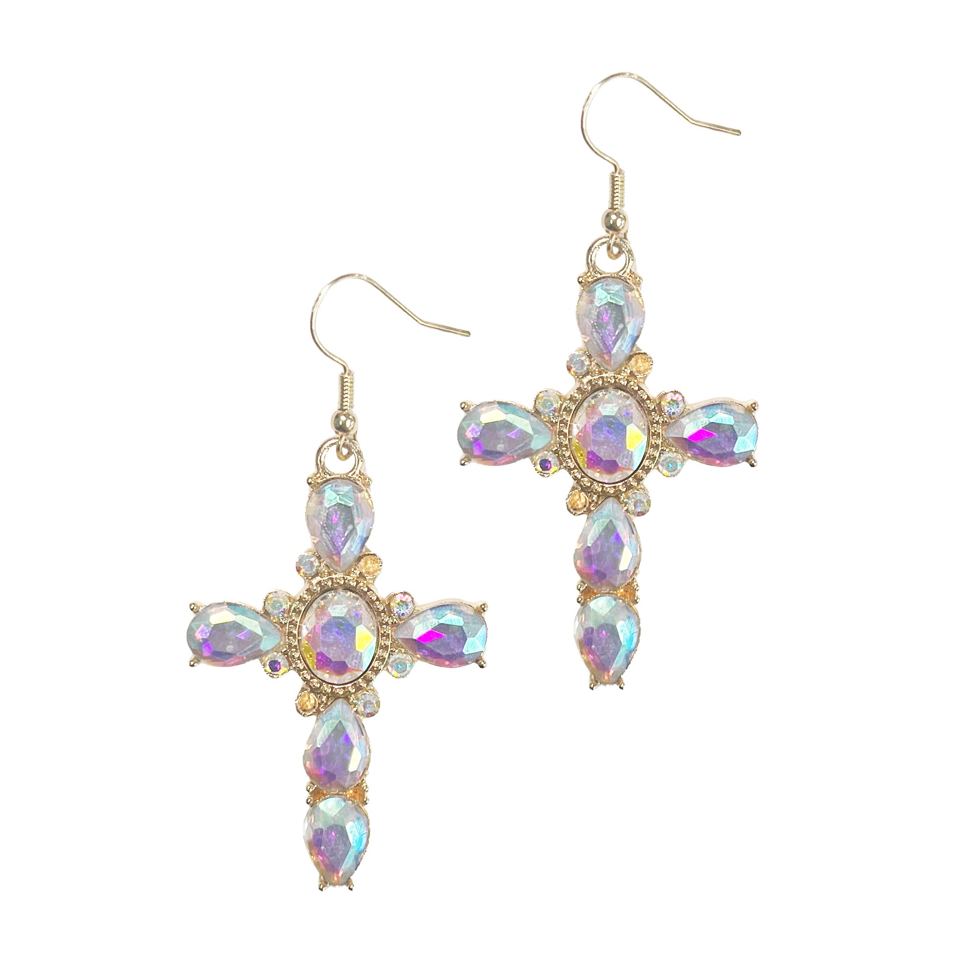 Elevate your elegance with our AB Crystal Cross Earrings, a captivating accessory that exudes sophistication and charm. These earrings feature intricately designed cross-shaped drops adorned with mesmerizing AB crystals, reflecting a spectrum of iridescent colors with every movement. The delicate yet eye-catching design adds a touch of glamour to any outfit, making them ideal for both formal occasions and everyday wear. Make a stylish statement and embrace the allure of these AB Crystal Cross Drop Earrings, a perfect choice for those who appreciate refined and radiant jewelry.
