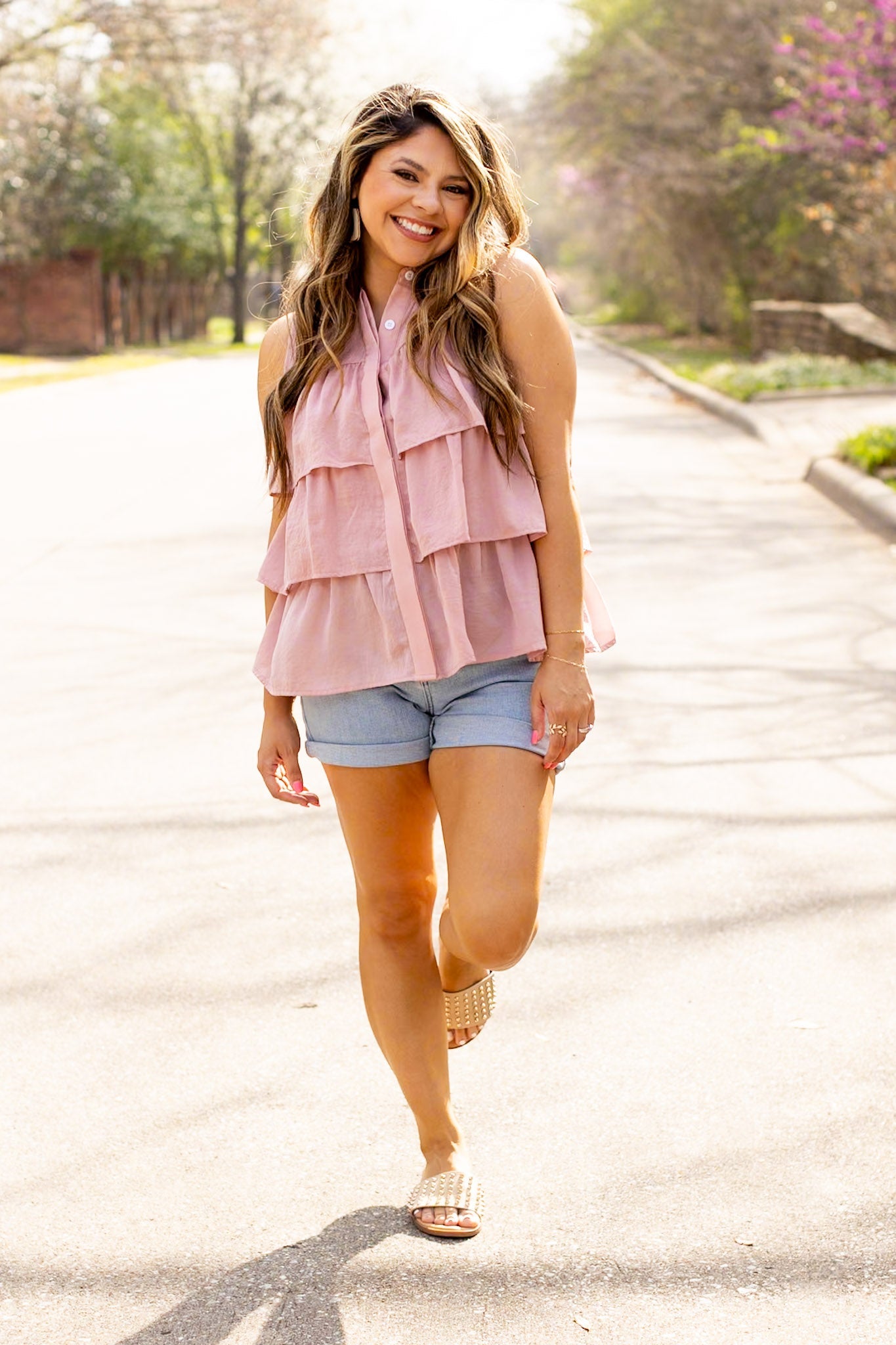 Andrea Sleeveless Ruffle Top, Blush
