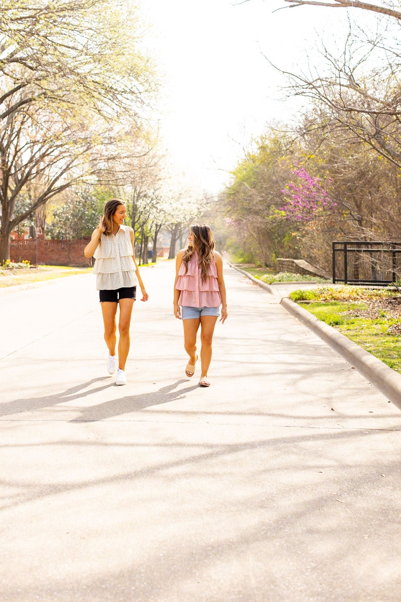 Presenting The Andrea Ruffle Button Down Sleeveless Blouse by Grace and Emma, available in two stunning colors: Ivory and Blush. True to fit and crafted from fresh, trendy materials, this blouse exudes effortless style and versatility. Elevate your wardrobe with this chic and fashion-forward piece.