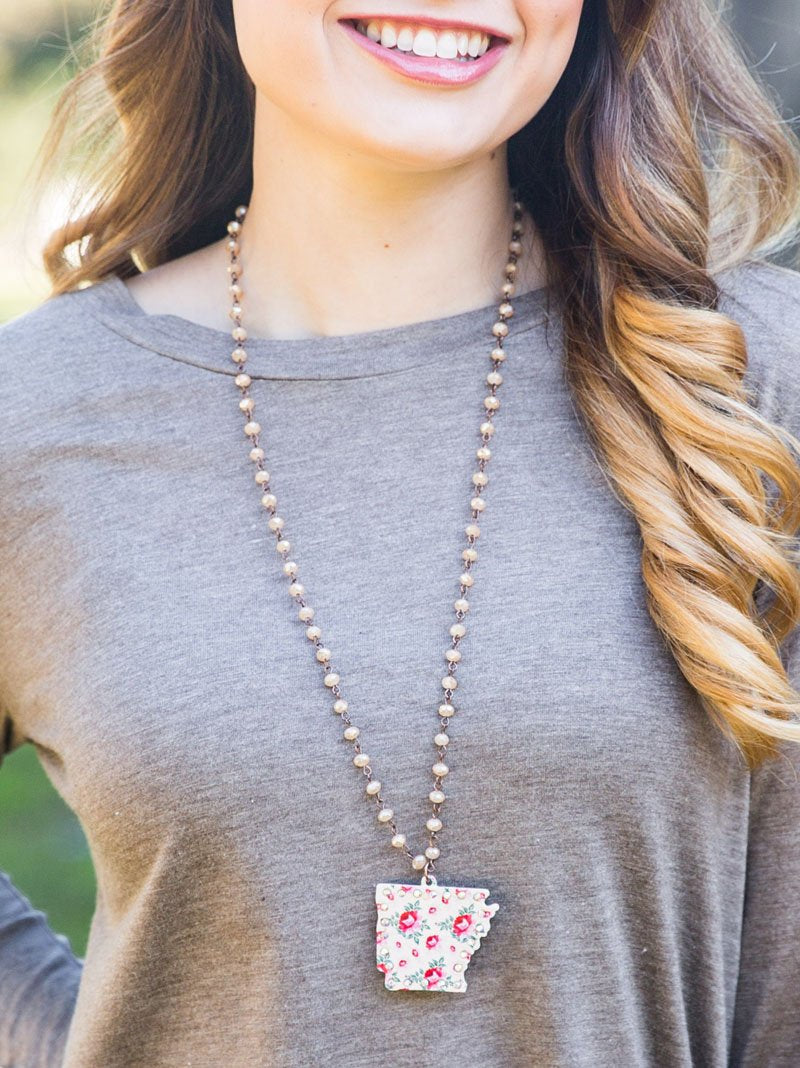 Beige Floral Arkansas Necklace with AB Crystals