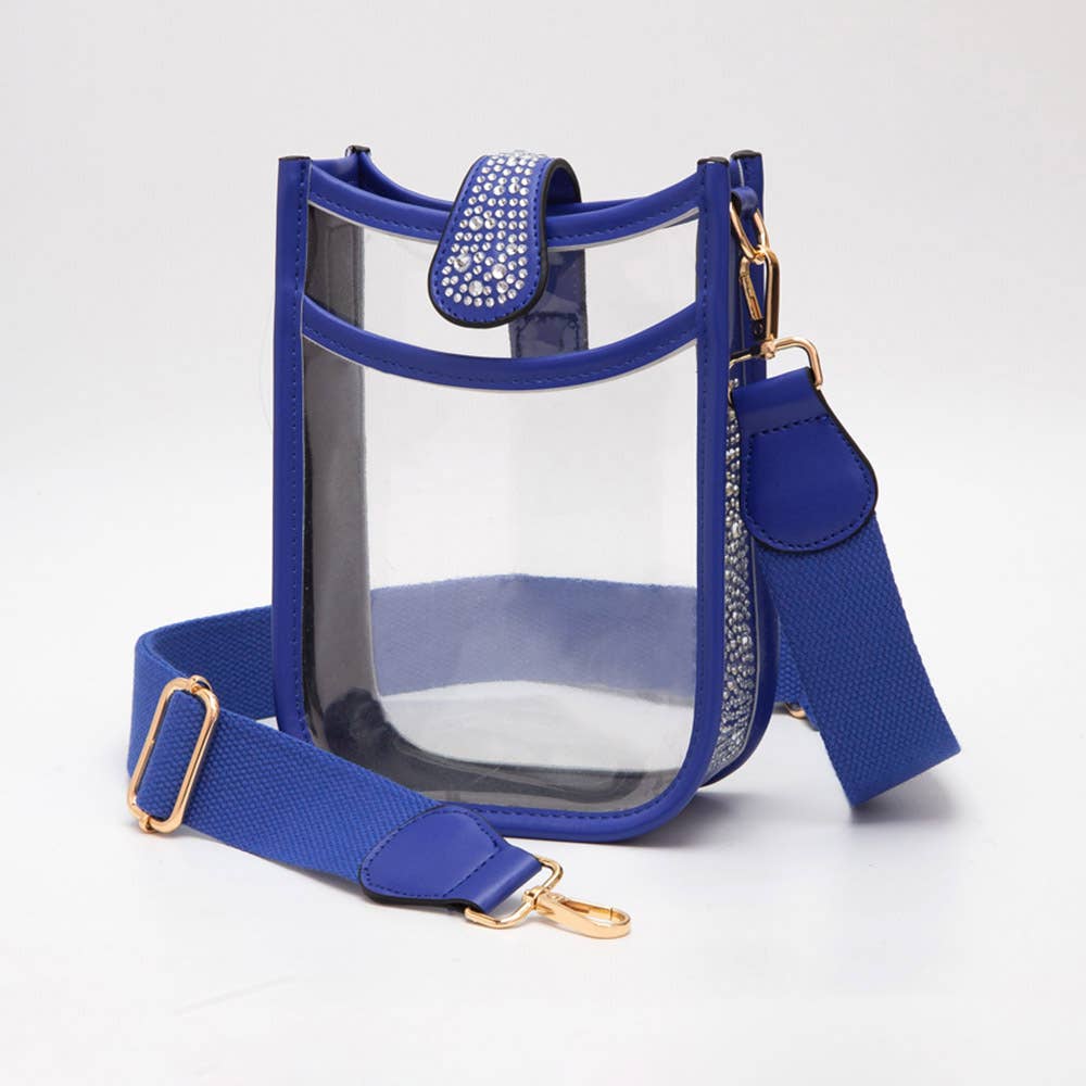 Stay stylish and event-ready with this clear crossbody bag featuring a wide adjustable strap and studded detailing. Perfect for stadiums, concerts, or daily use, it offers secure storage and visibility while adding a modern, functional edge to any outfit.