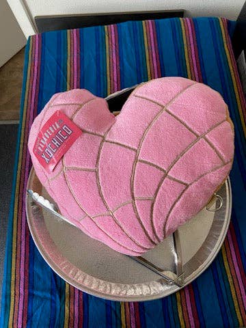 The plush concha bag is heart-shaped, and has extra padding for extra comfort. It also has extra rings on it so you can use this as a back pack or cross-body shoulder bag.