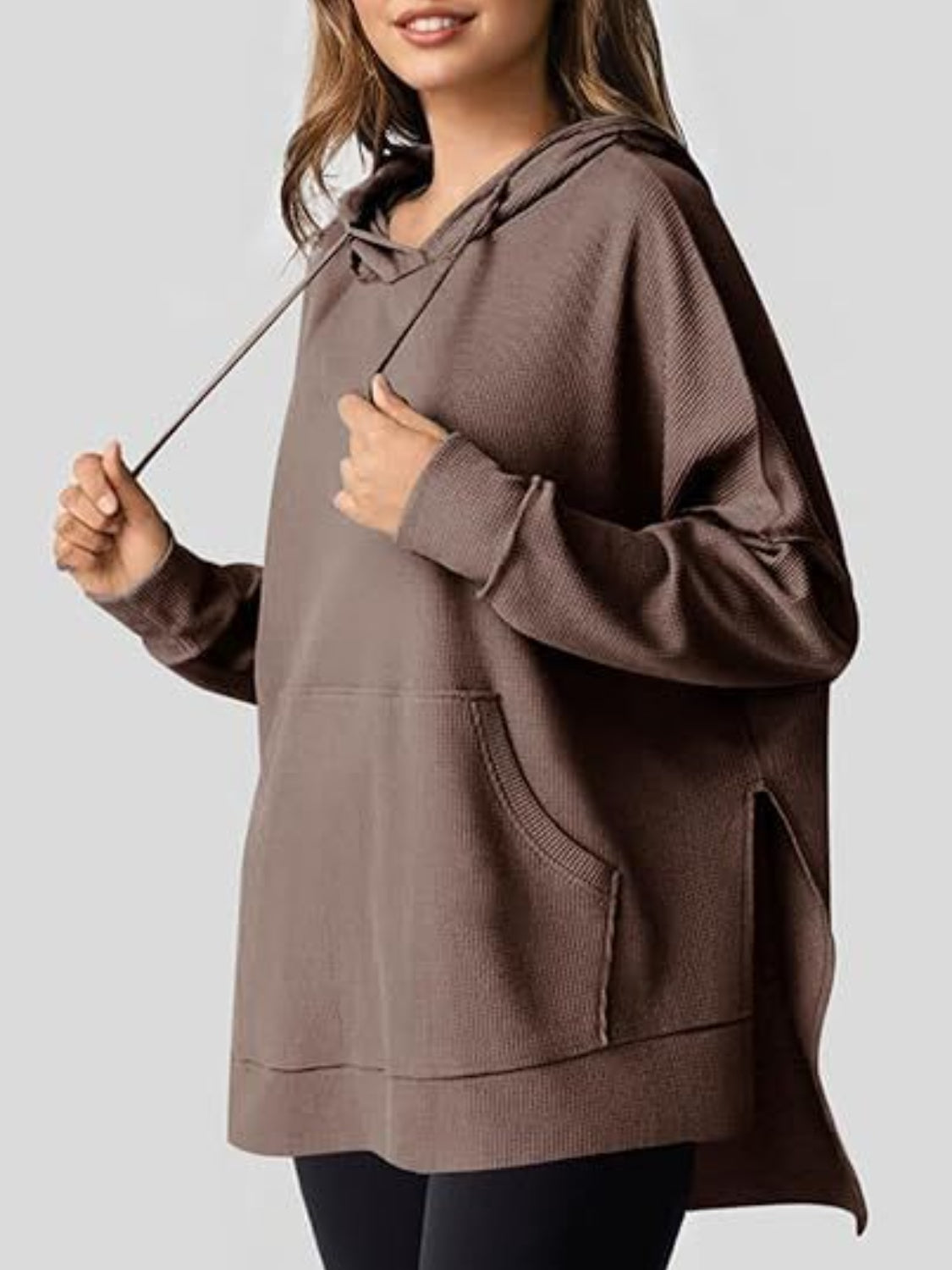 Drawstring Slit Long Sleeve Hoodie