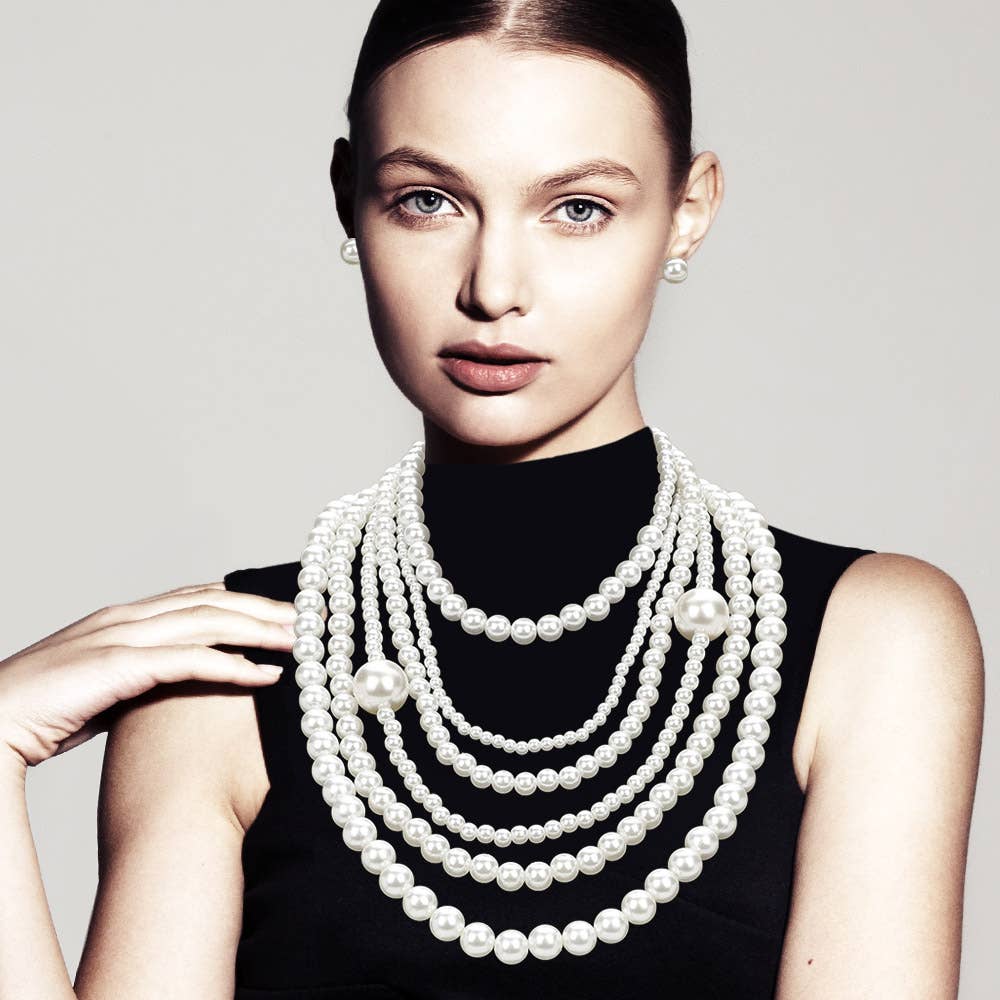 Pearl Beaded Multi Layered Statement Necklace
