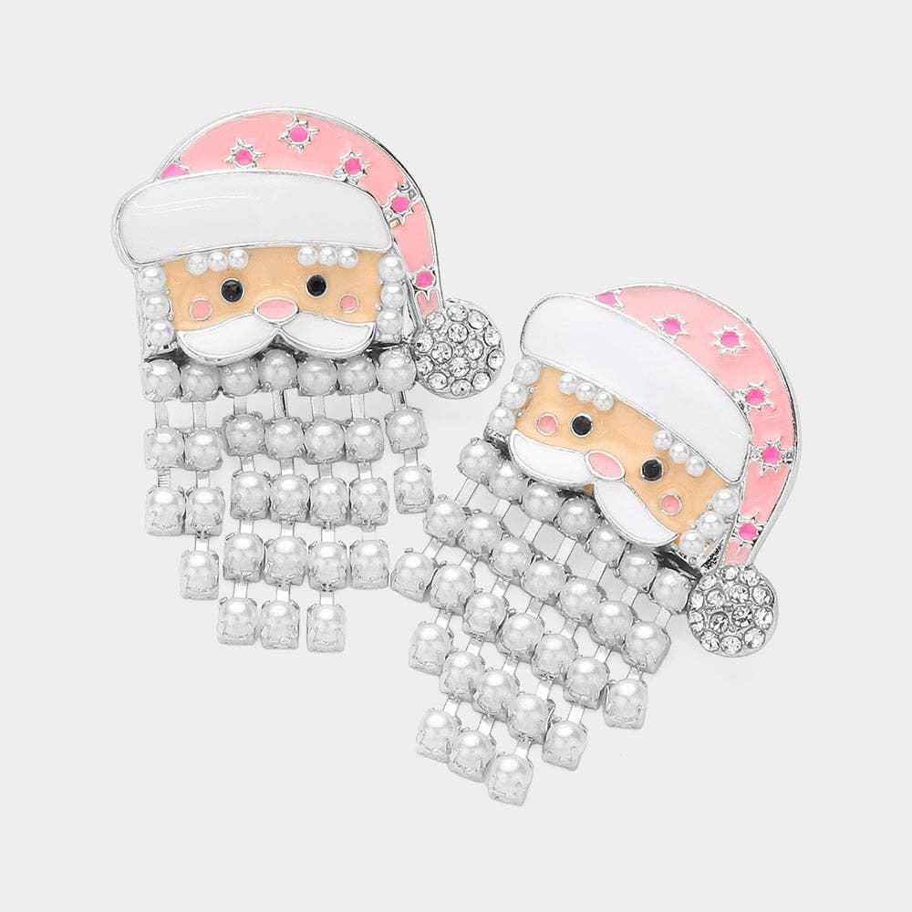 Make spirits bright with these playful Santa fringe earrings! Featuring a charming enamel Santa face and cascading beaded fringe, these festive earrings bring movement, sparkle, and holiday cheer to any outfit. Perfect for holiday markets, gift shops, and boutique displays that need a merry touch.