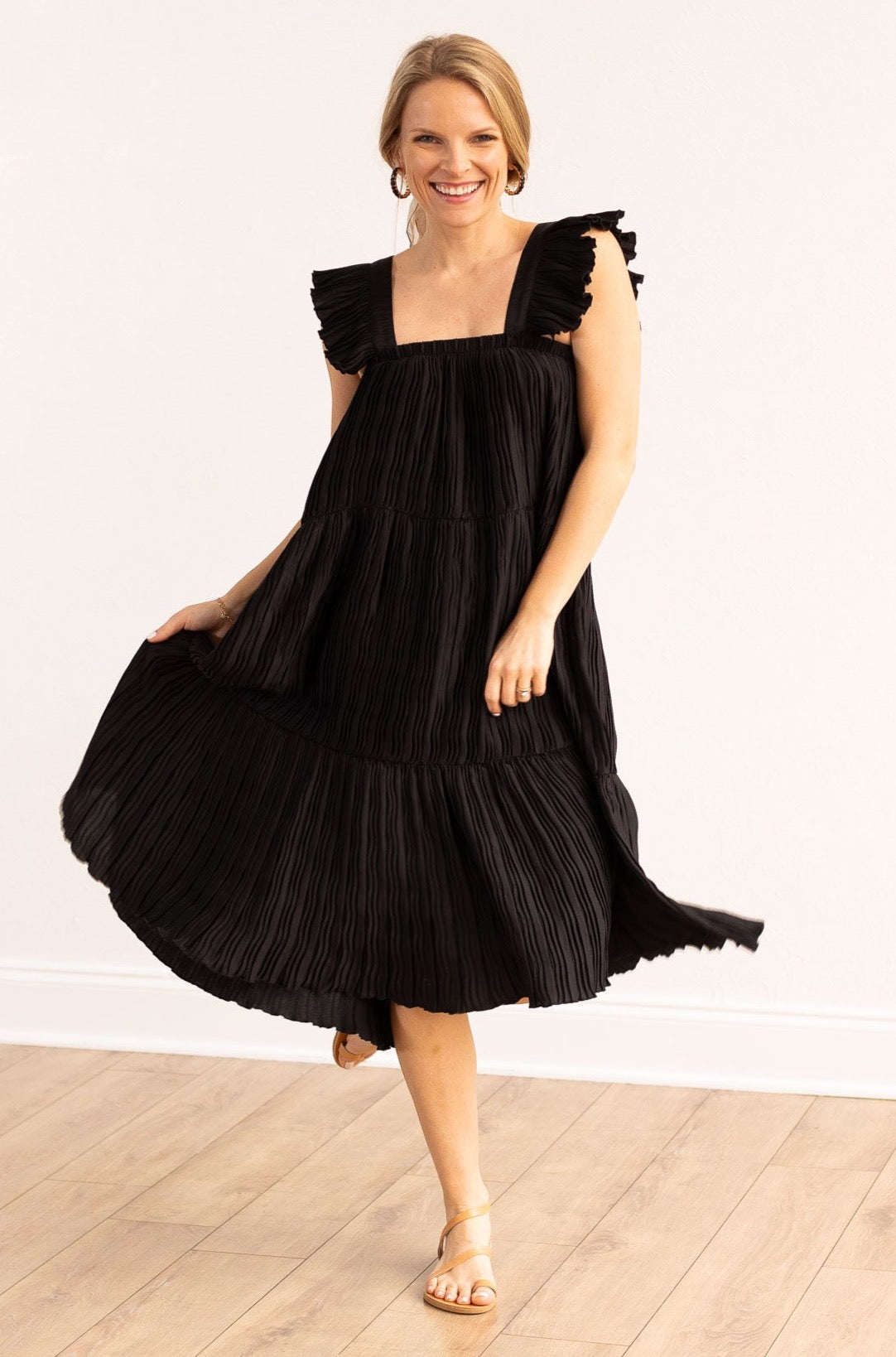 Pleated Versi Dress, Black
