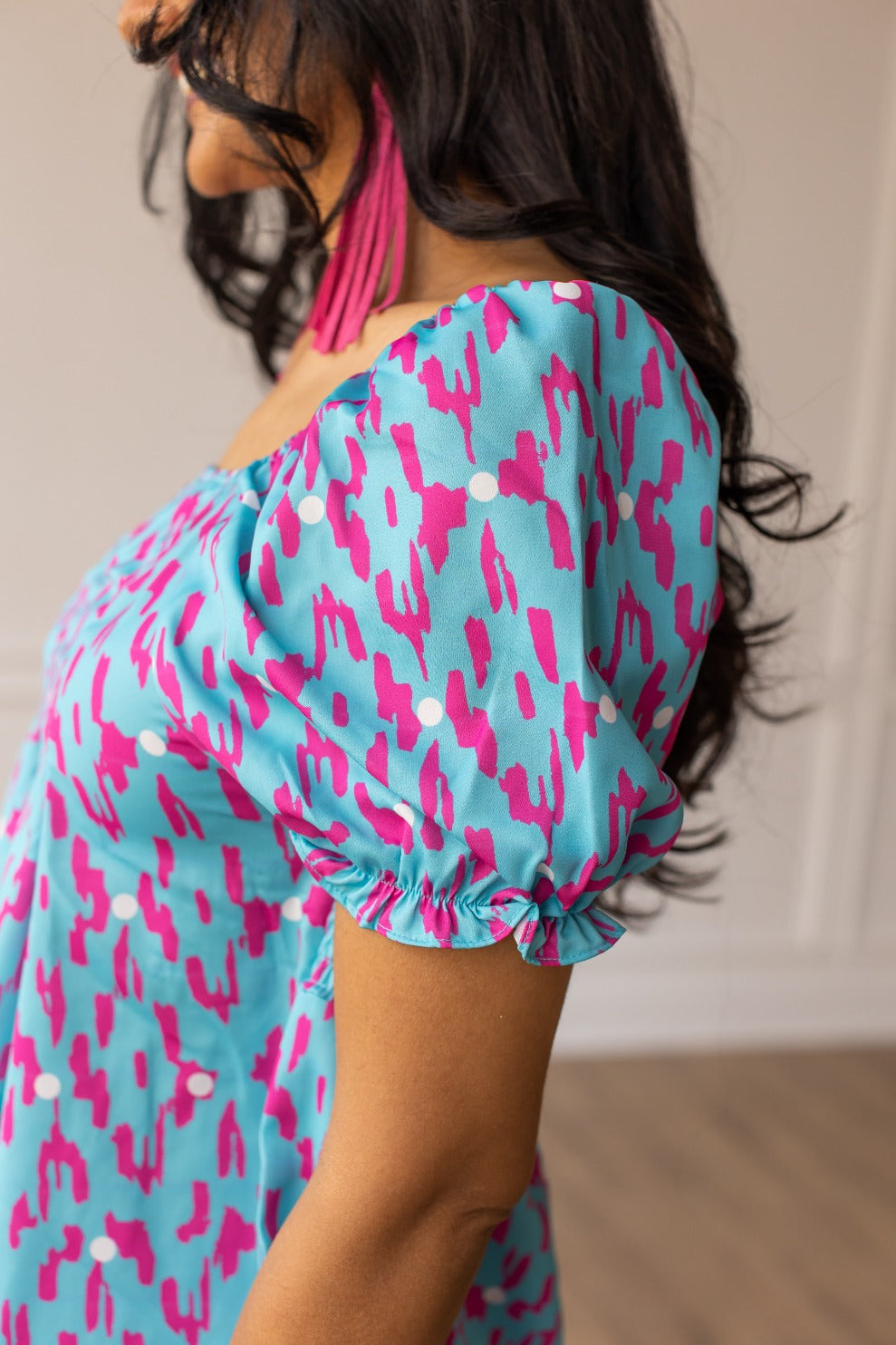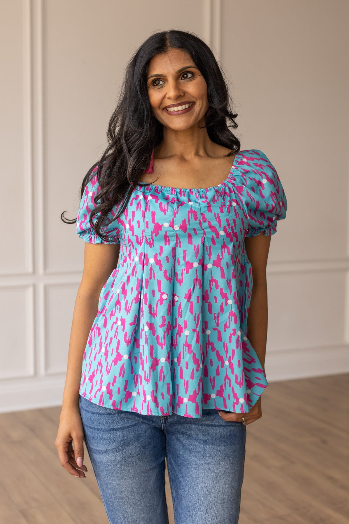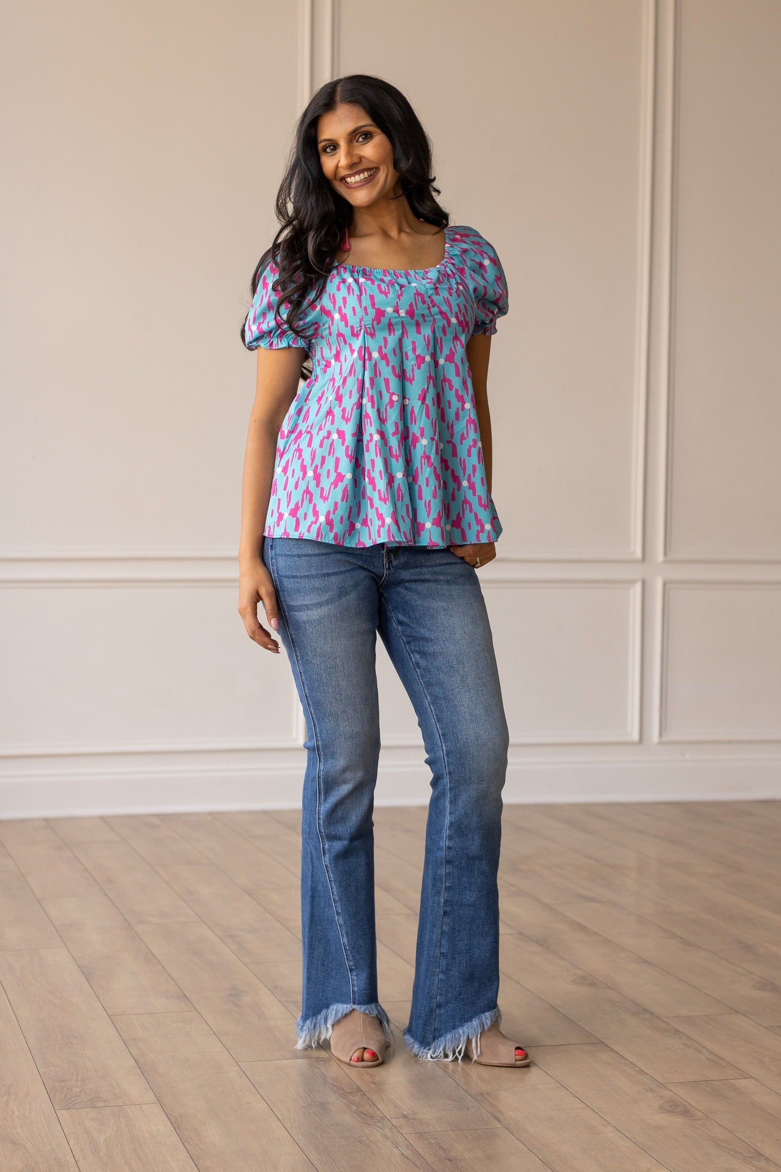 Looking for a top that's trendy and versatile? Look no further than our Southern Goals Aztec Babydoll Top! Made with a vibrant turquoise fabric and a stylish Aztec pattern, this top is sure to make a statement. Its babydoll style is both comfortable and flattering, and can be dressed up or down depending on the occasion. Whether you're headed to a concert or just running errands, our Aztec Babydoll Top has got you covered.