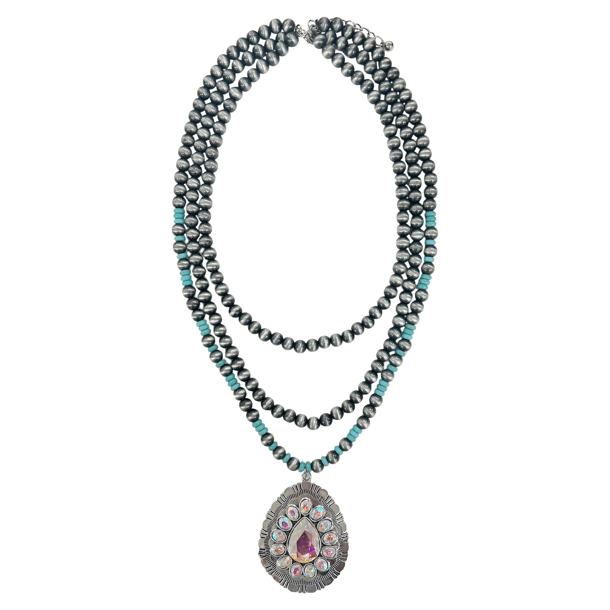 Indulge in a touch of Southwest-inspired elegance with our Special Treatment Silver and Turquoise Layered Necklace. This eye-catching piece combines faux turquoise and silver beads, exuding a rustic charm that captures the essence of the desert landscape. The layered design adds depth and dimension, creating a statement necklace that effortlessly elevates your style. Whether you're dressing up for a special occasion or adding a bohemian flair to your casual ensemble, this necklace offers a unique blend of sophistication and natural beauty.