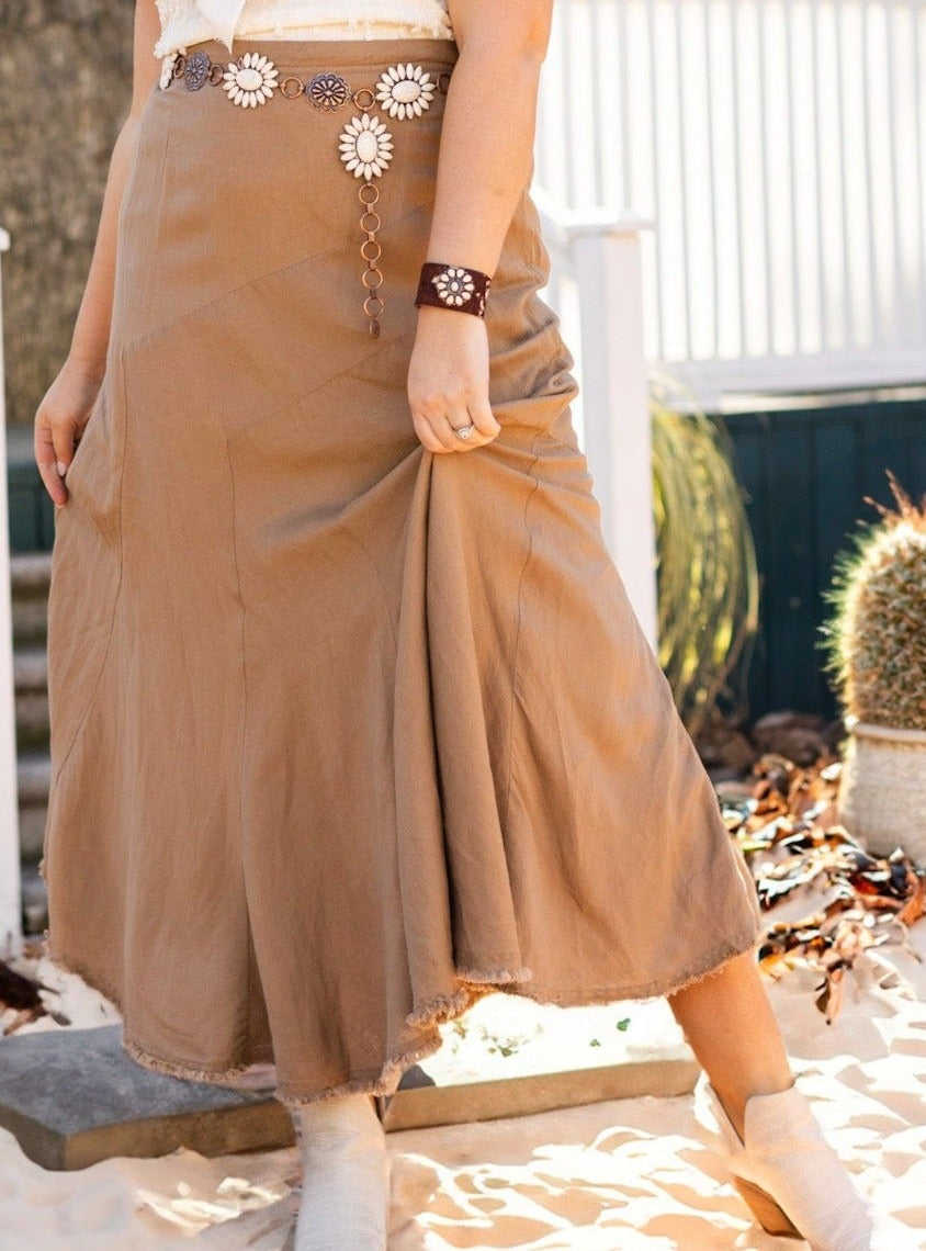 The 'Versi Dress' is the ultimate wardrobe multitasker. Crafted from a linen-blend fabric, this innovative piece seamlessly transforms from a skirt into a dress with its removable straps, giving you three looks in one. With endless styling possibilities, the Versi Dress is your go-to choice for effortlessly chic looks.