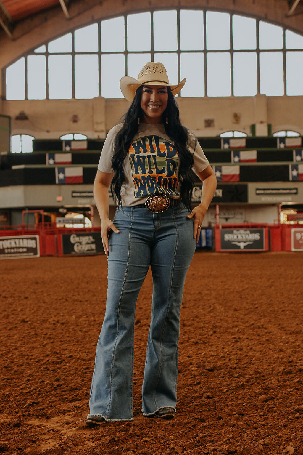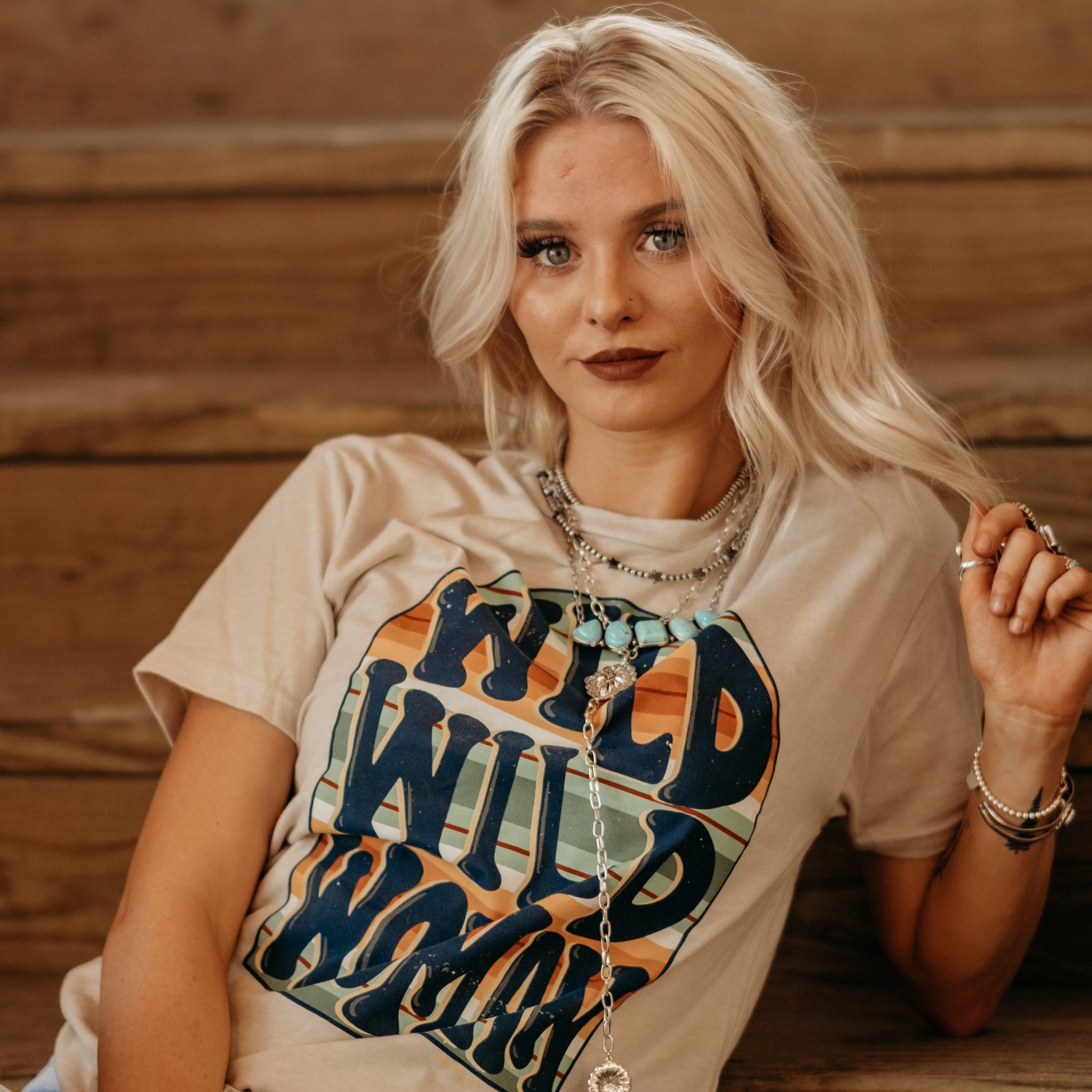 Don’t ever be scared to show your wild side and do it in style with this Wild, Wild Woman Western Graphic T-shirt! A fun brightly colored graphic with retro text printed on a Bella Canvas Tee. Whether you're headed out to the honky tonk or keeping it casual this tee is just what your closet is missing!